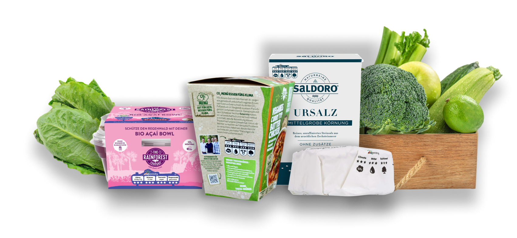 Display the Eaternity Score, your CO2e savings or a custom score directly on product packaging to build trust and showcase your commitment to transparency.
